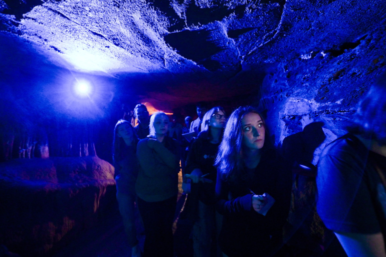 Students in Robert Lake Wilson Professor of Geology Amy Brock-Hon’s “A Moc’s First Year” course toured Raccoon Mountain Caverns in September. Photo by Angela Foster.